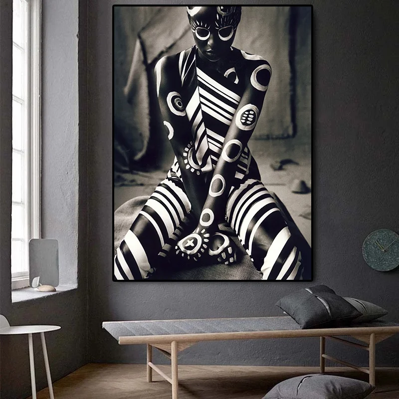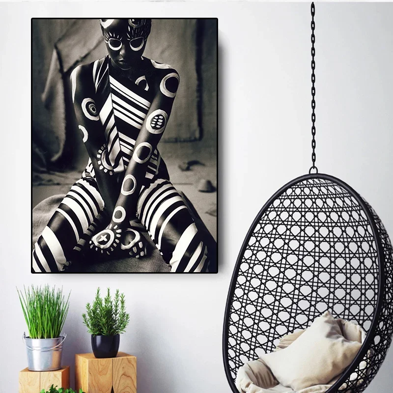 Body Painting African Women Canvas Painting Black and White Portrait Posters and Prints Wall Picture for Living Room Decoration